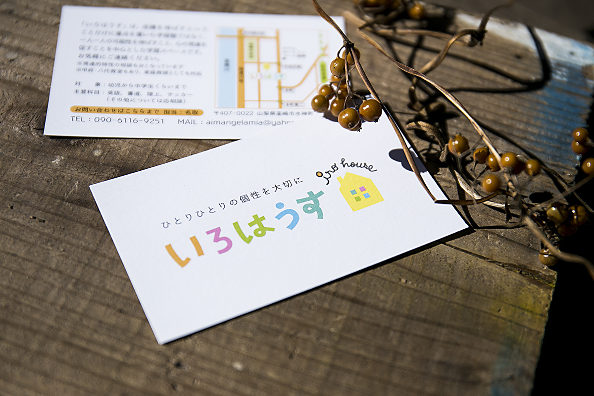 いろはうす Logo&Shop Card OlderNewer いろはうす Logo&Shop Card 幼稚園児から中学生までのお子さんを対象にした個人学習スペース、「いろはうす」様のロゴとショップカードを制作しました。 人それぞれ、いろいろな色がある場所になるようにデザインさせていただきました。 Categories Graphic Design, LOGO DESIGN Client いろはうす Share Related Items 一木 – hitotsuki -ロゴ LOGO DESIGN 98 BEERs ロゴ LOGO DESIGN Pizzeria SEI OTTO ロゴ LOGO DESIGN